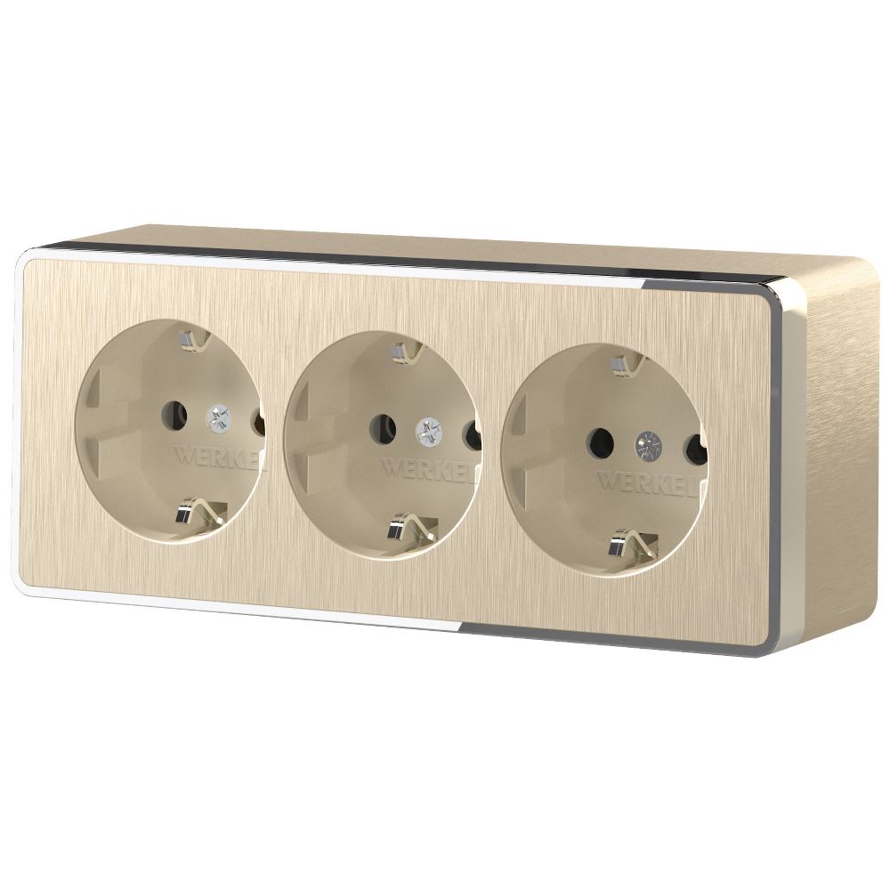 Розетка накладная тройная Werkel Gallant с заземлением и шторками Шампань рифленый W5073110