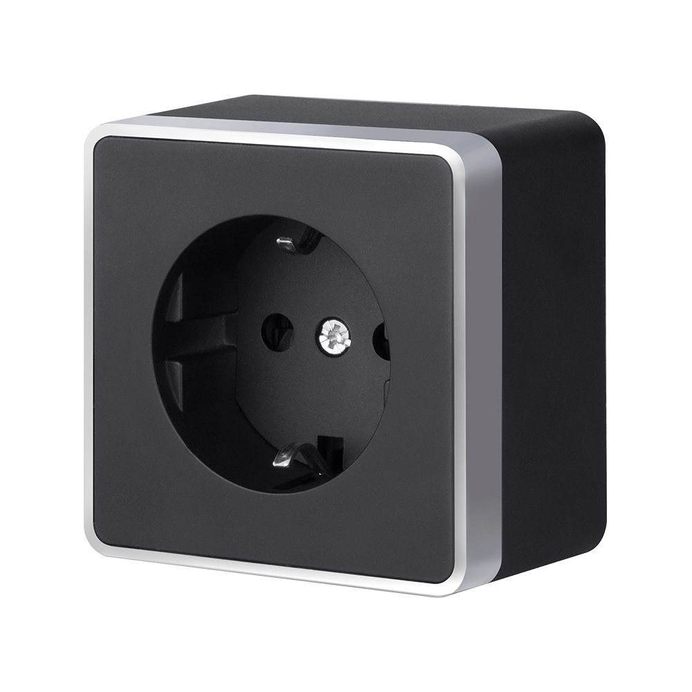 Розетка накладная Werkel Gallant с заземлением и шторками Черный / Серебро W5071134