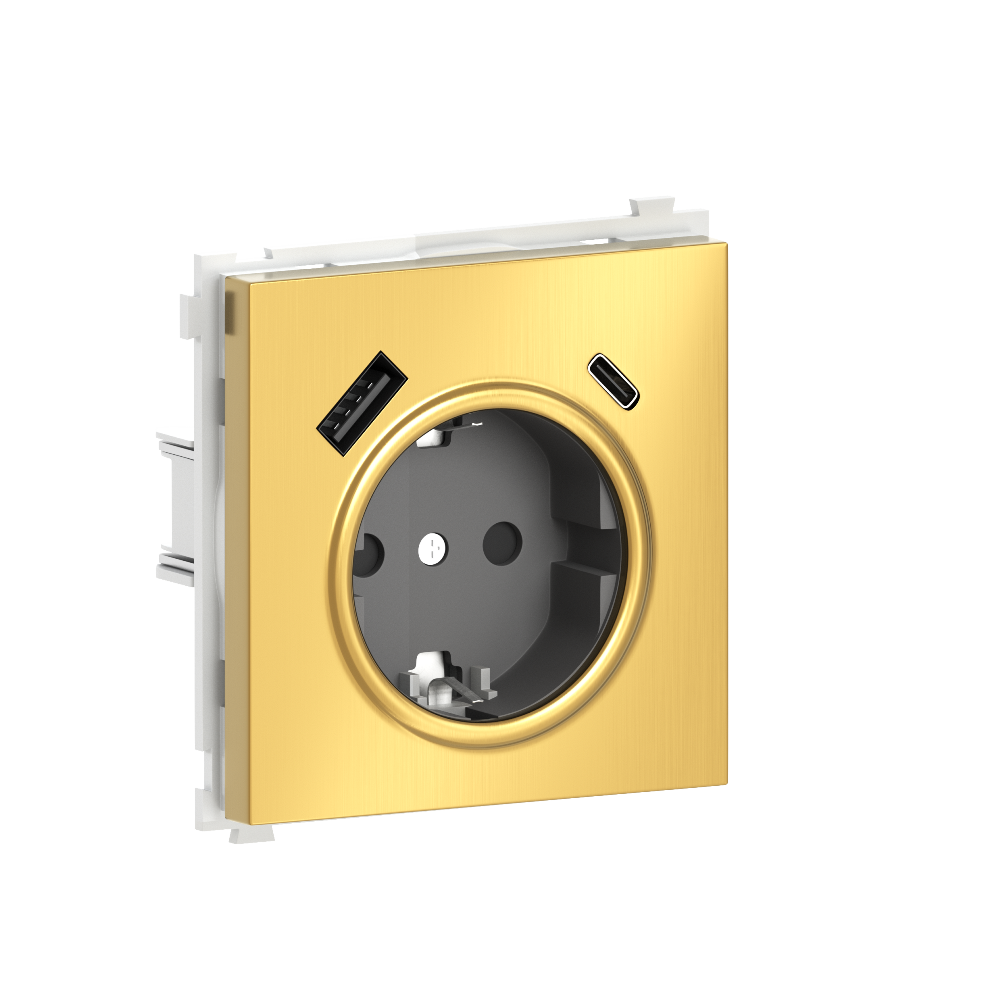 Розетка встраиваемая Donel R98 Metal с заземлением, шторками и USB тип A+C Золото матовое DA15500-DA222BR