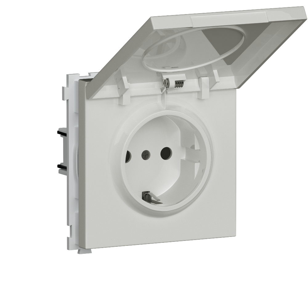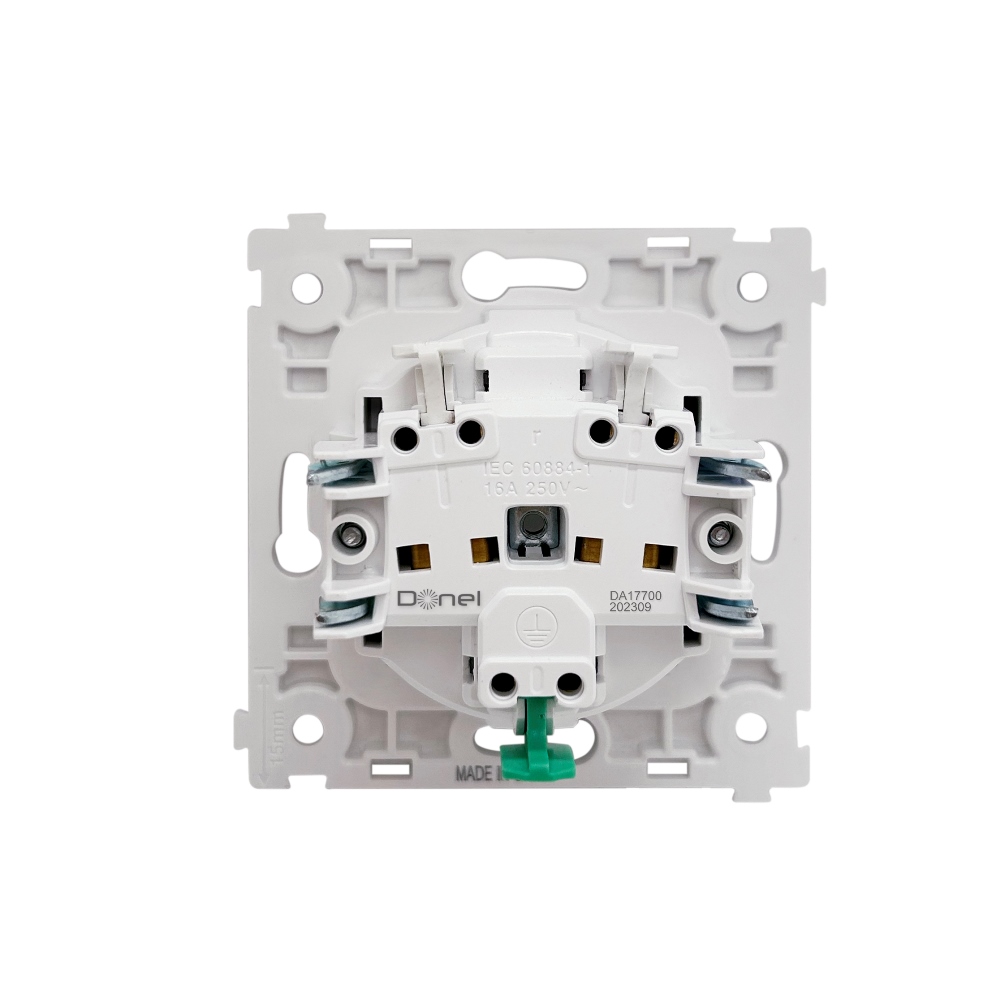 Розетка встраиваемая Donel R98 Schuko с крышкой и заземлением на клеммах Белый глянцевый DA17700-DA52003