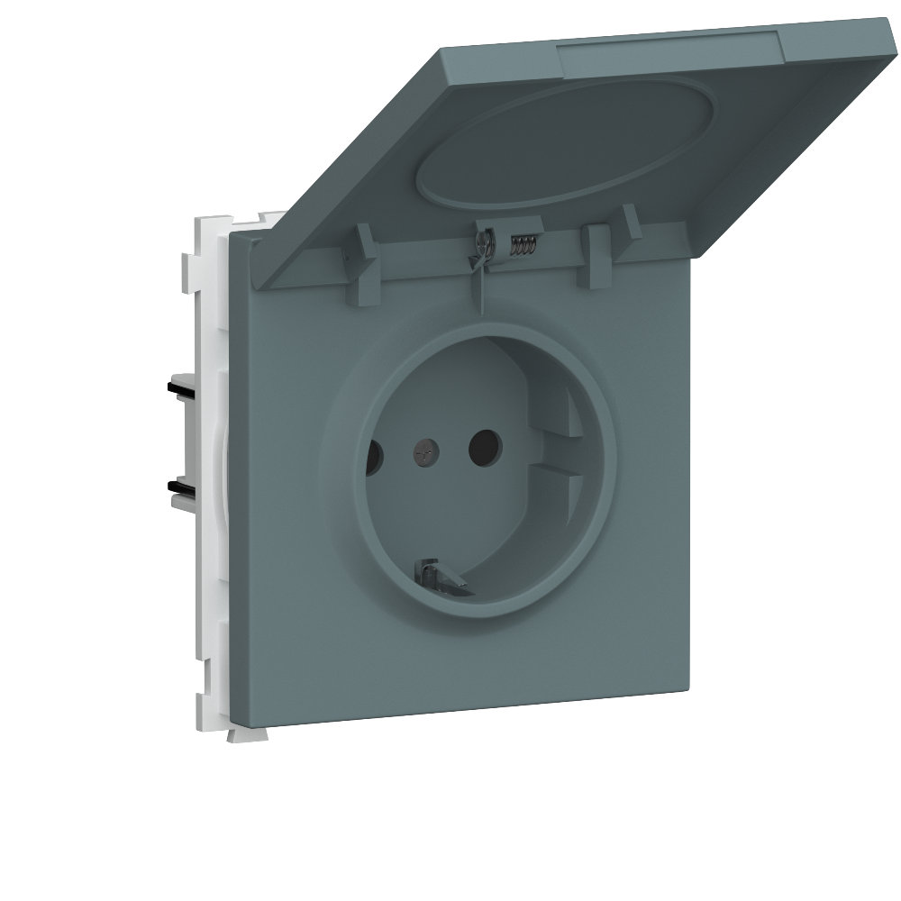 Розетка встраиваемая Donel R98 Schuko с крышкой и заземлением на клеммах Изумруд матовый DA17700-DA52039