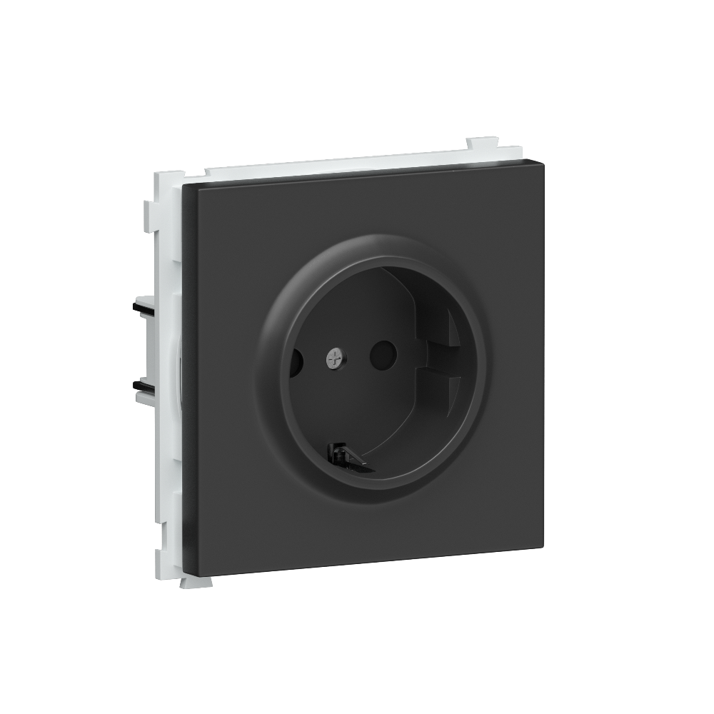 Розетка встраиваемая Donel R98 Schuko с заземлением и шторками на клеммах Черный матовый DA17700-DA22028