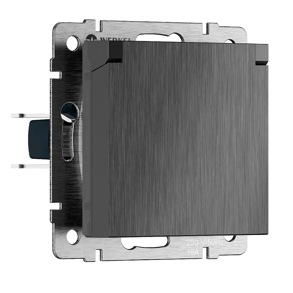 Розетка встраиваемая влагозащищенная Werkel с заземлением, шторками и защитной крышкой Графит рифленый W1171204