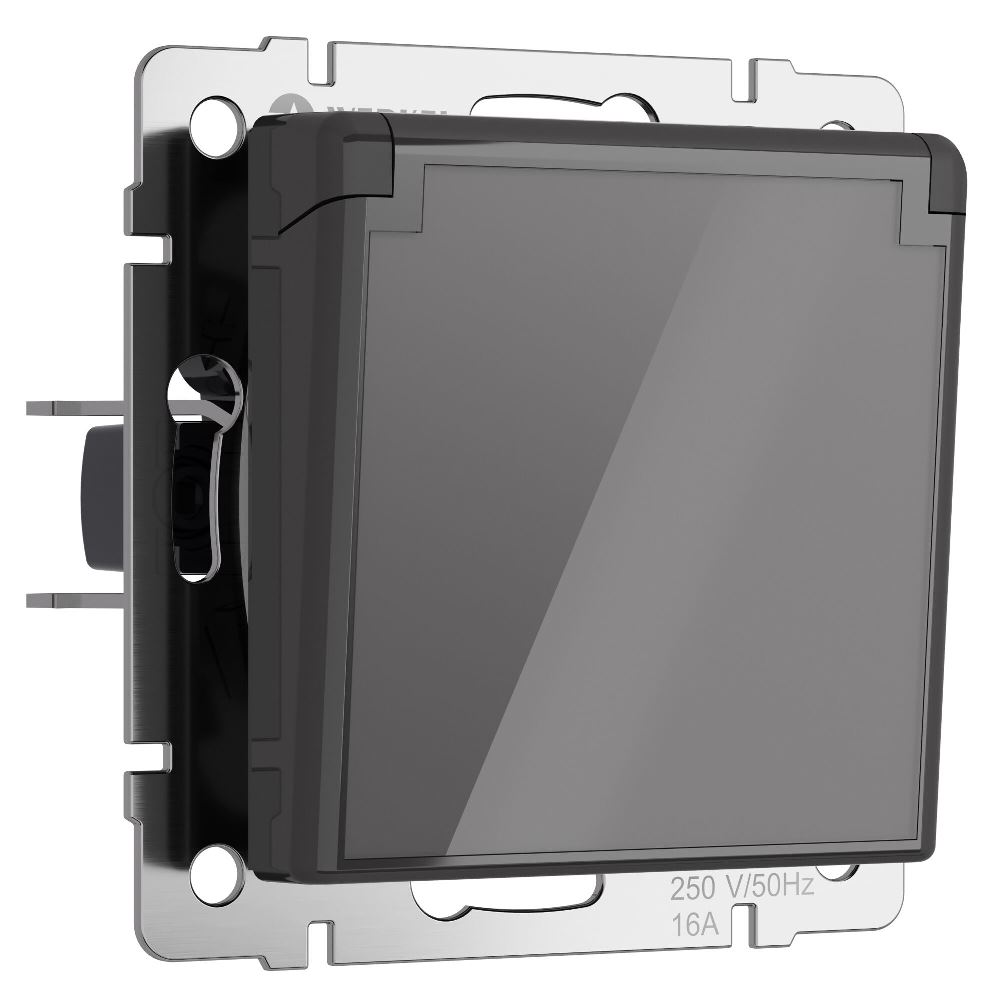 Розетка встраиваемая влагозащищенная Werkel с заземлением, шторками и защитной крышкой Графит W1171244
