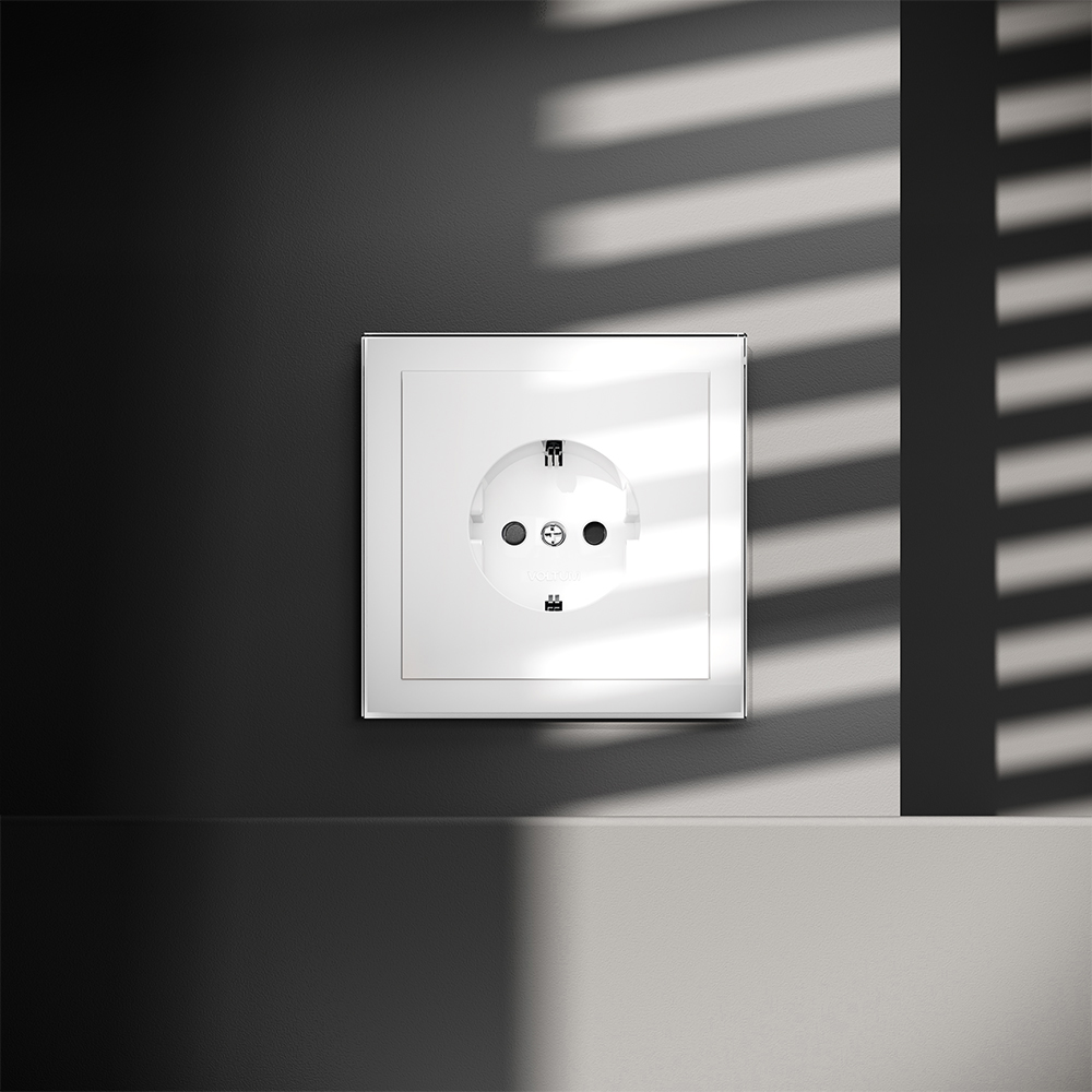 Розетка встраиваемая Voltum S70 с заземлением и шторками Белый Глянцевый VLS040201