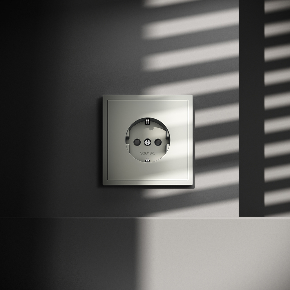 Розетка встраиваемая Voltum S70 с заземлением и шторками Сталь VLS040205