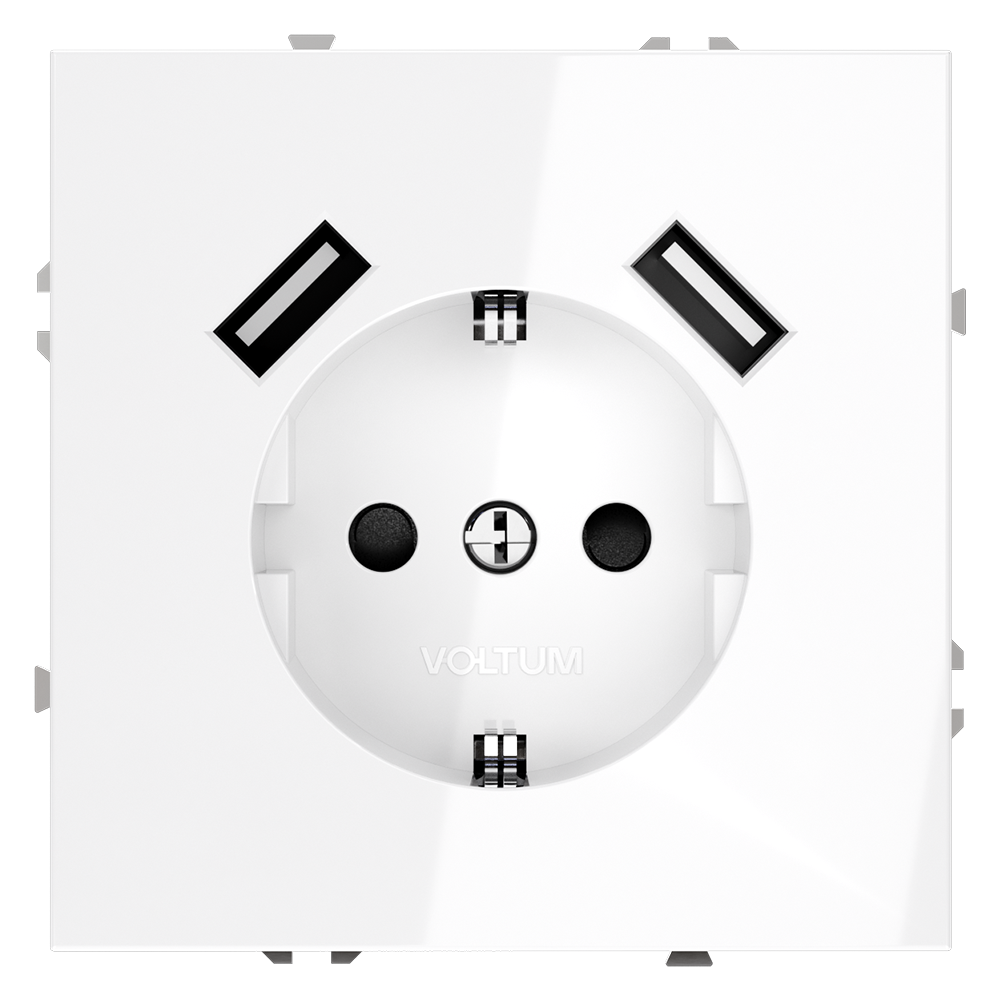 Розетка встраиваемая Voltum S70 с заземлением, шторками и USB A+A Белый Глянцевый VLS040401