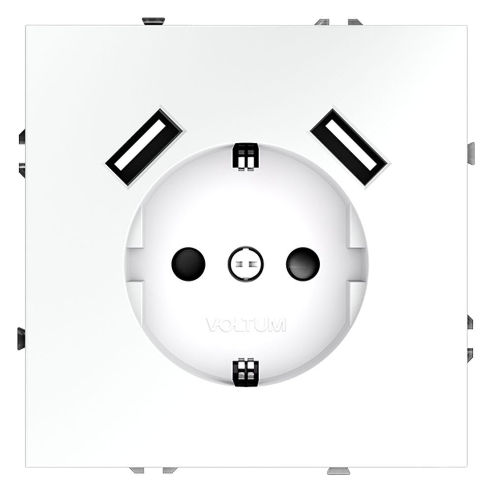 Розетка встраиваемая Voltum S70 с заземлением, шторками и USB A+A Белый матовый VLS040402