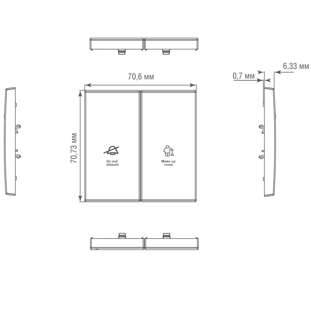 Выключатель двухклавишный встраиваемый Donel R98 Metal с символами DND/MUR Вороненая сталь DA25800-DA888GS