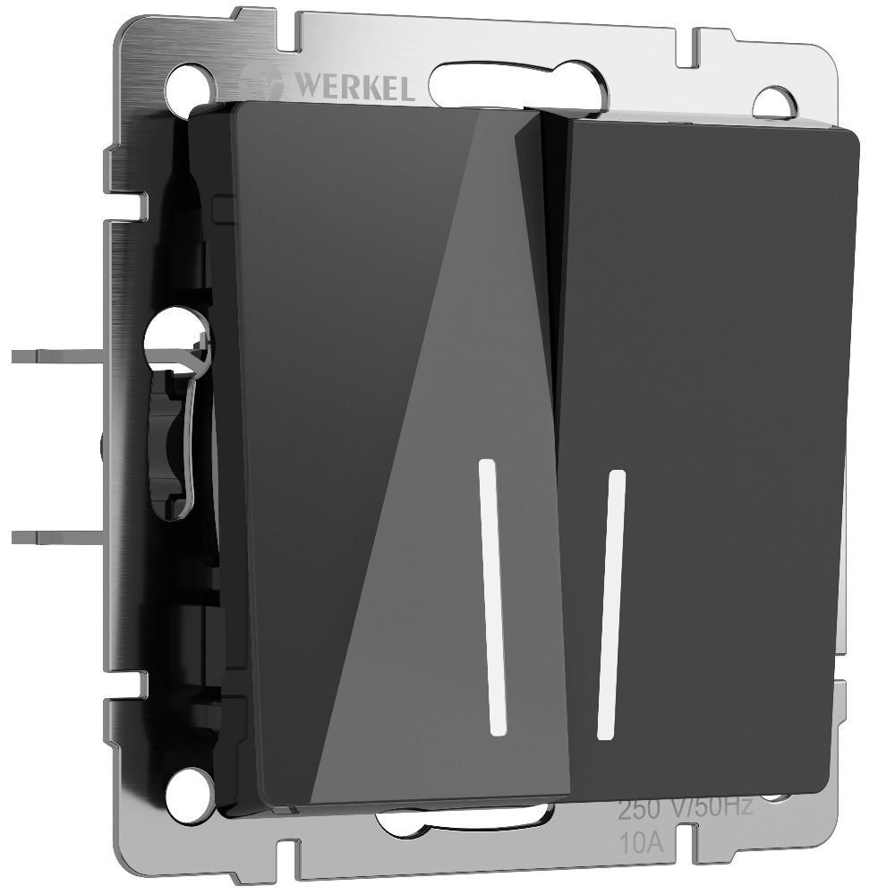 Выключатель двухклавишный встраиваемый проходной Werkel с подсветкой Черный W1122148