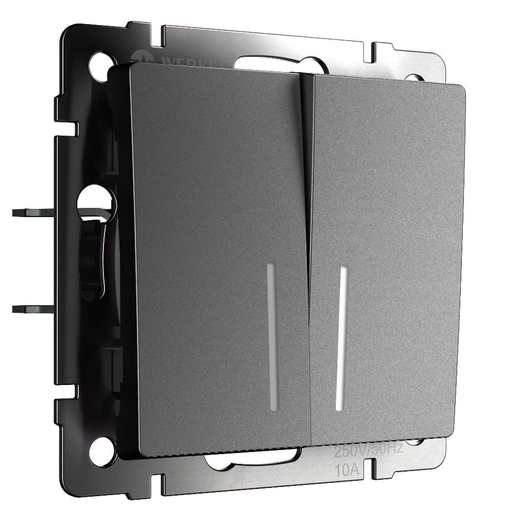Выключатель двухклавишный встраиваемый проходной Werkel с подсветкой Графит матовый W1122164
